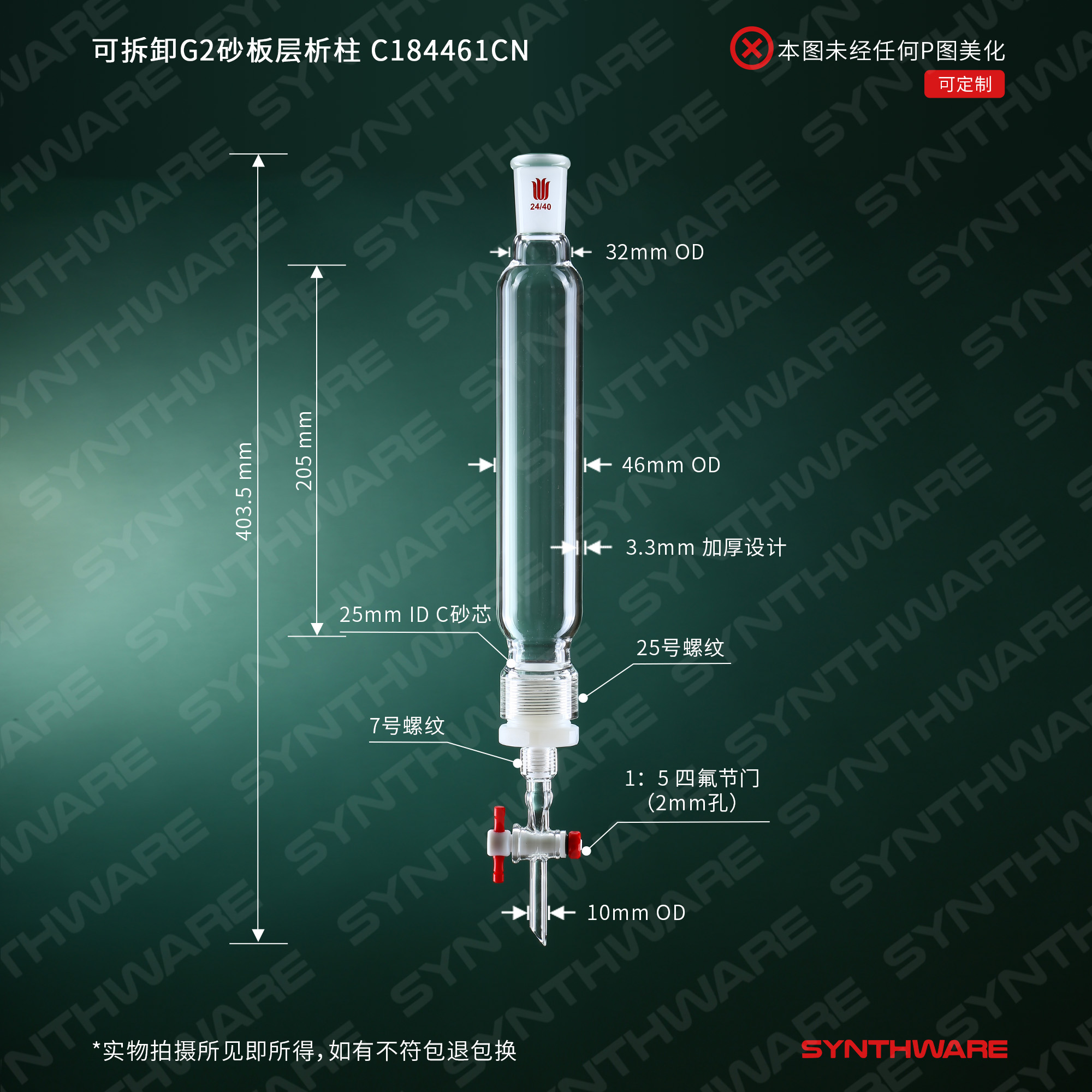 > 25#螺纹尼龙材质,可拆卸G2砂板层析柱,磨口24/40,有效长度203,主管外径46mm C184461CN