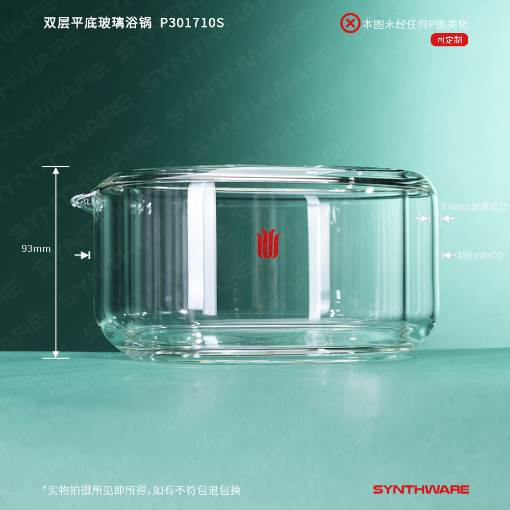 双层平底玻璃浴锅,内径143mm内深90mm,外径180mm外高93mm P301710S