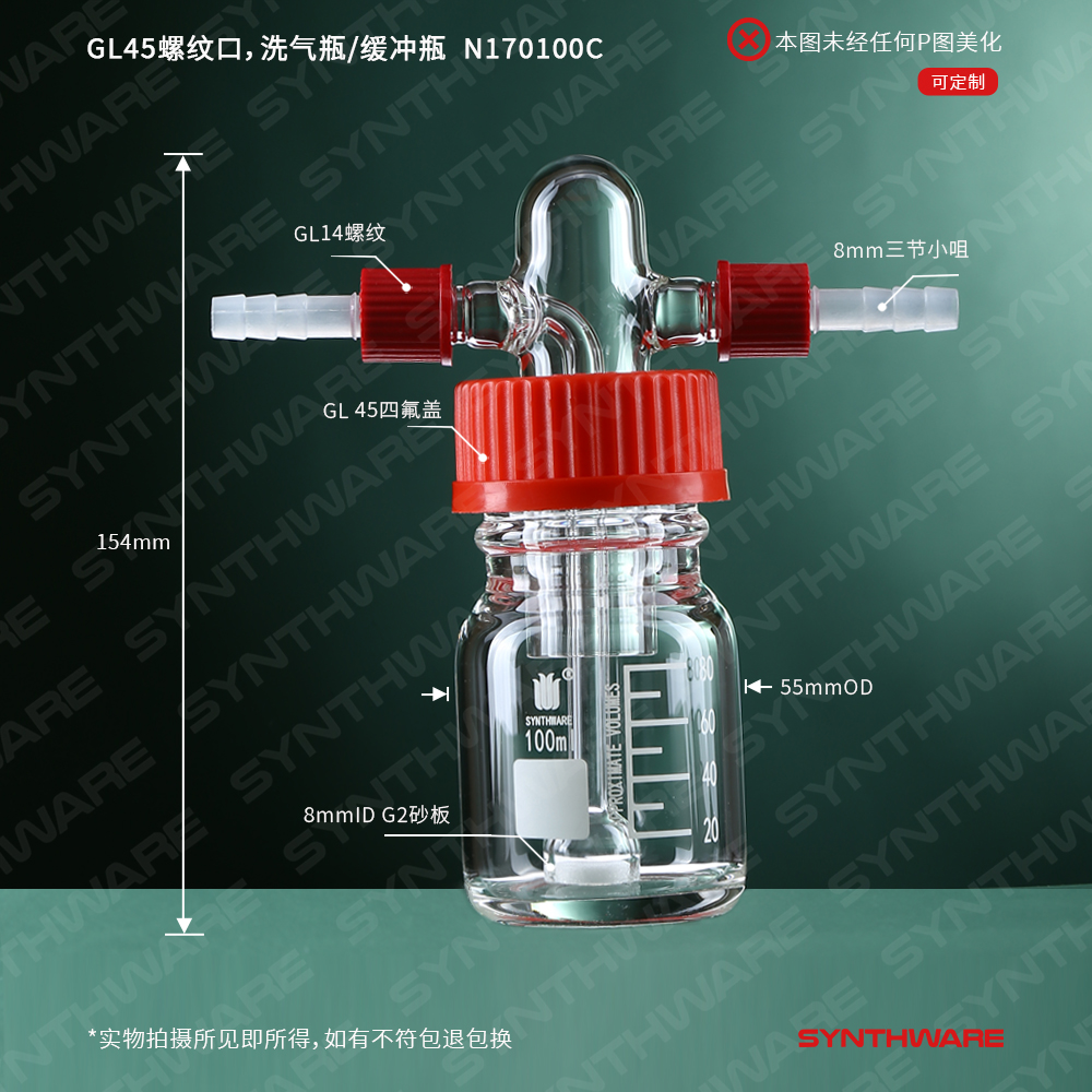 GL45螺纹口,洗气瓶/缓冲瓶,容量100ml,内管G2砂板 N170100C