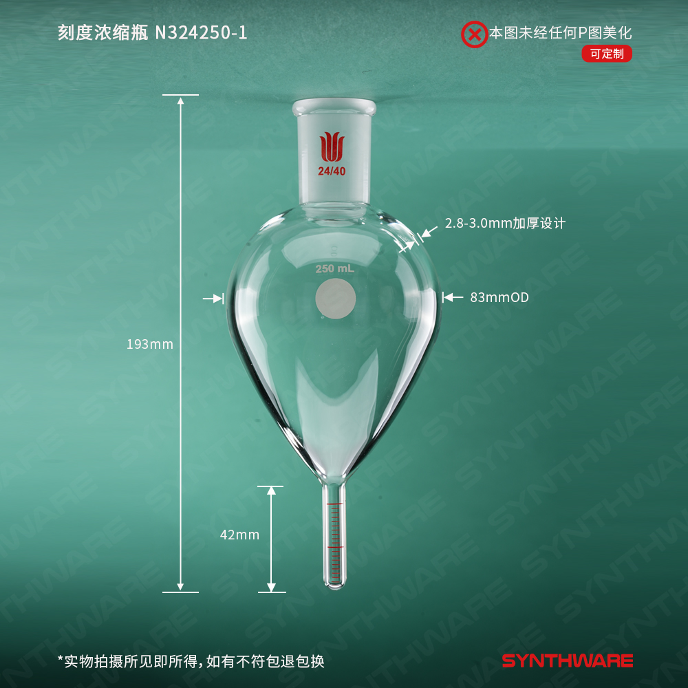 刻度浓缩瓶,磨口24/40,容量250ML,浓缩管容量1ML,最小分度值0.1ML N324250-1