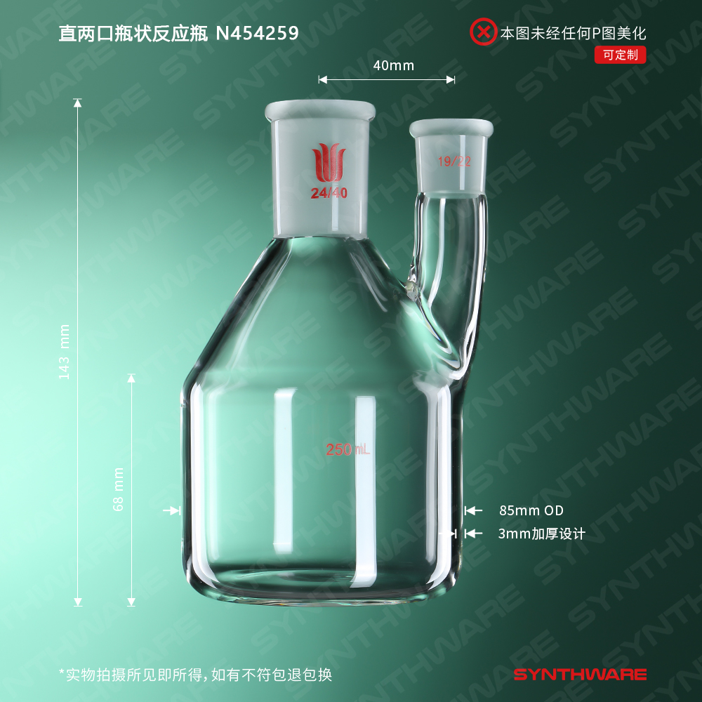 直两口瓶状反应瓶,容量:250ML,主口24/40,侧口19/22 N454259