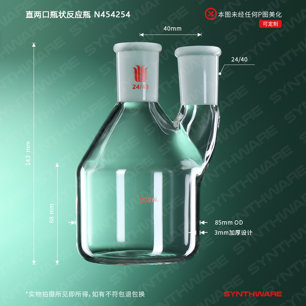 直两口瓶状反应瓶,容量:250ML,主口24/40,侧口24/40 N454254
