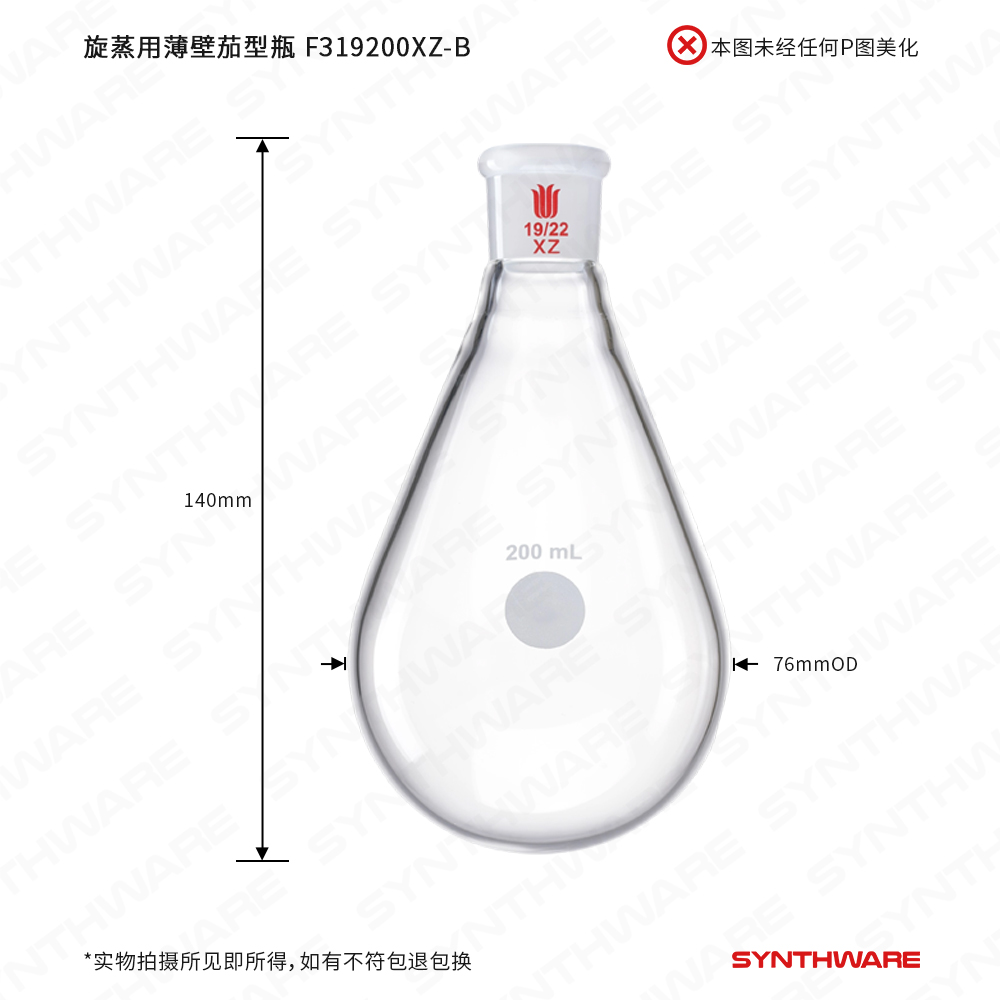 旋蒸用薄壁茄型瓶,高强度,磨口:19/22,200ml F319200XZ-B