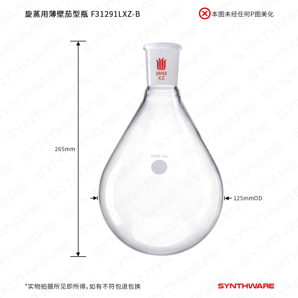 旋蒸用薄壁茄型瓶,高强度,磨口:29/42,1000ml F31291LXZ-B