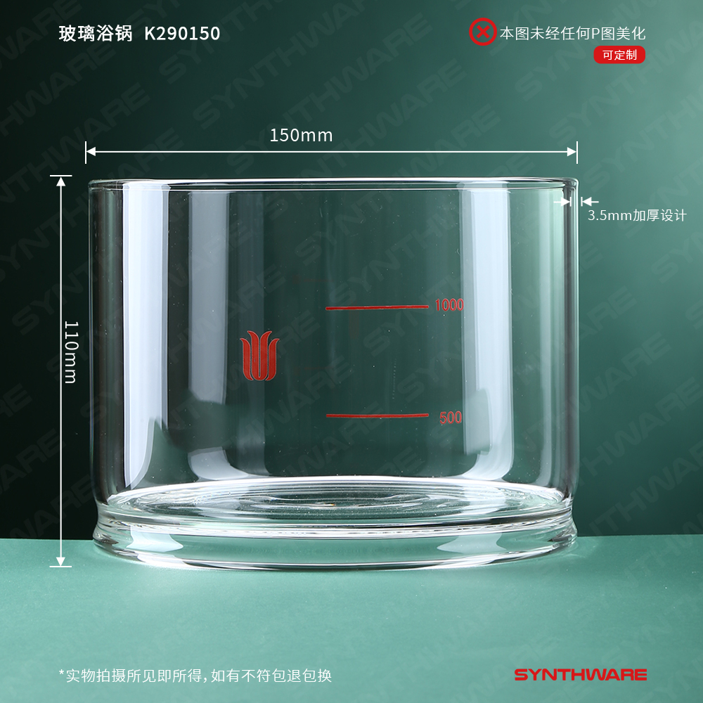 壁厚3.5mm玻璃浴锅,底部带卡槽,可匹直径140mm已内的磁力搅拌器圆盘 K290150