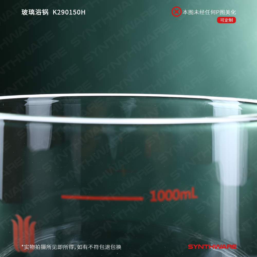 壁厚3.5mm玻璃浴锅,底部带卡槽,可匹直径140mm已内的磁力搅拌器圆盘 K290150