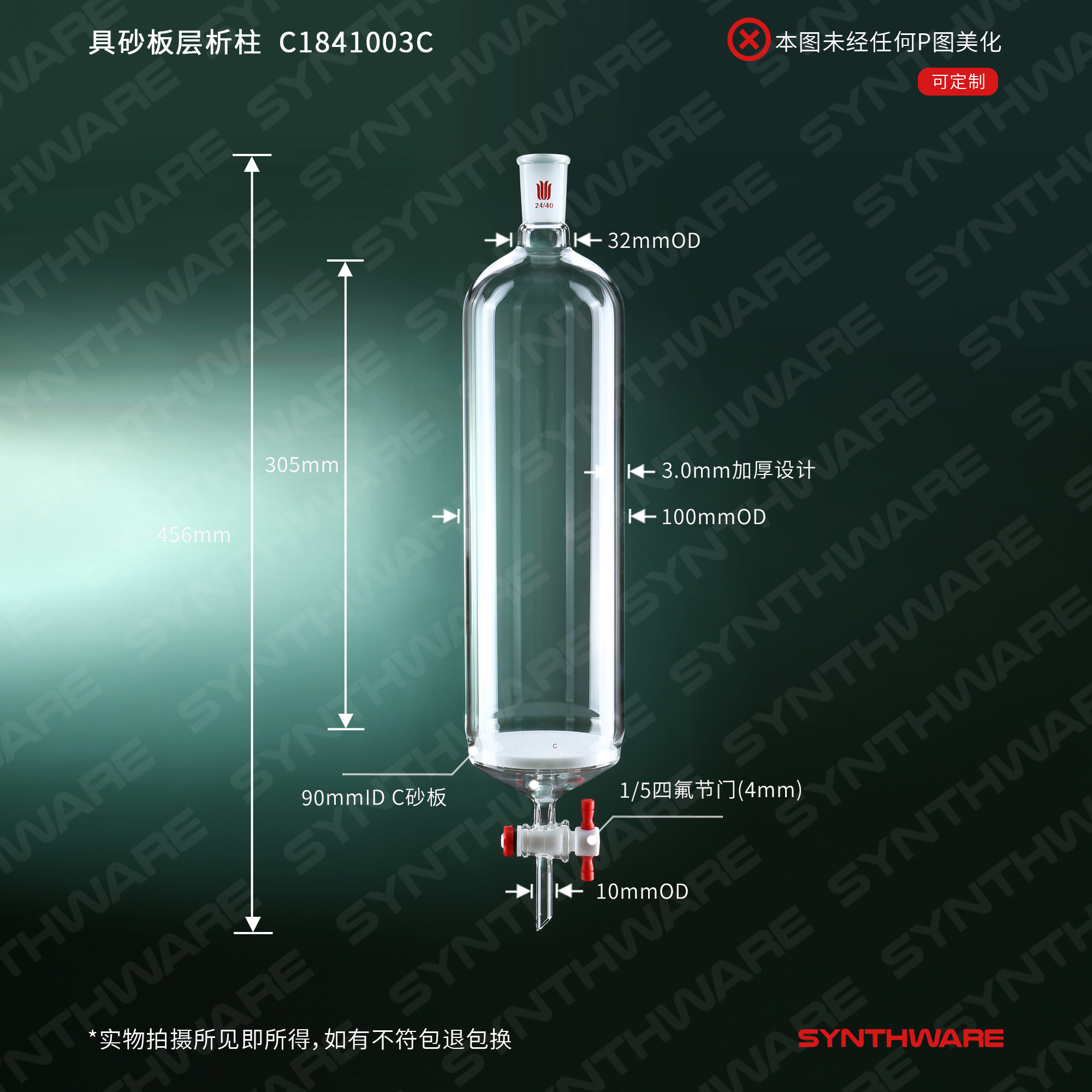 具砂板层析柱,φ100mm,有效长305mm,节门孔径:4mm,24/40 C1841003C