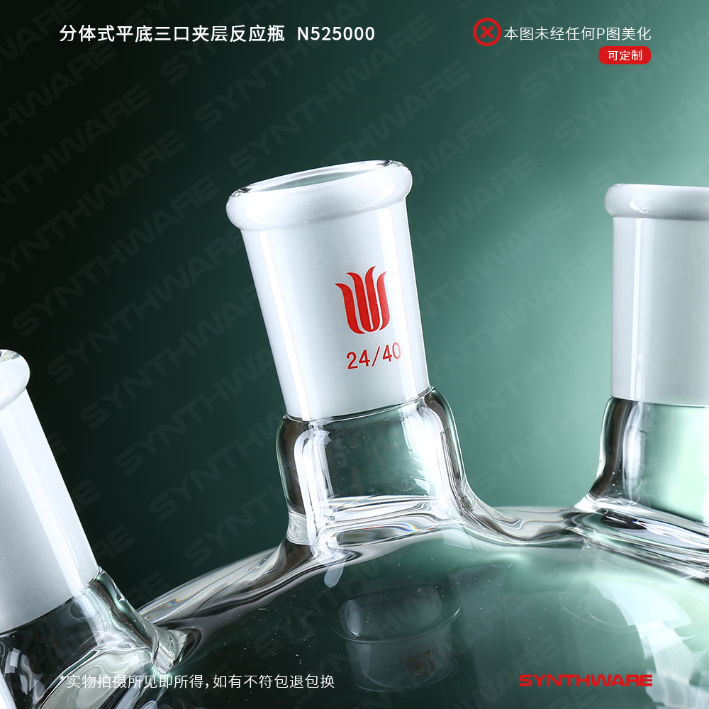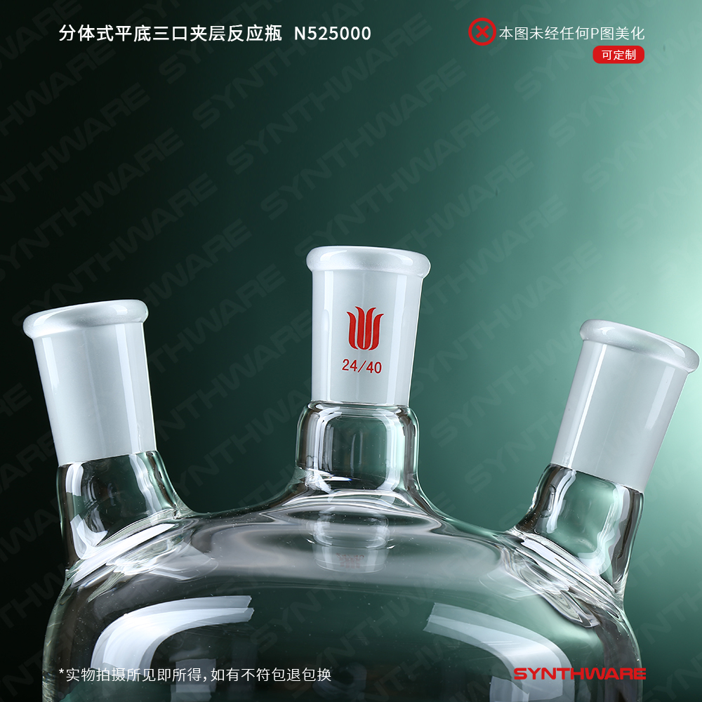 分体式平底三口夹层反应瓶,容量:1000ML,磨口:24/40,右侧口可匹配温度计套管 N524000T