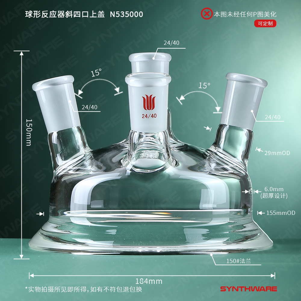 分体式平底四口夹层反应瓶,容量:3000ML,磨口:24/40,右侧口可匹配温度计套管 N533000T