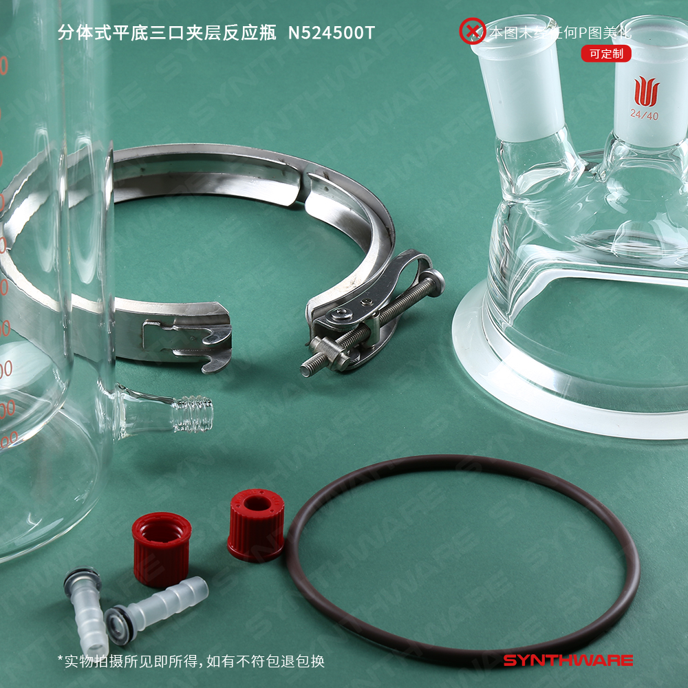 分体式平底三口夹层反应瓶,容量:500ML,磨口:24/40,右侧口可匹配温度计套管 N524500T
