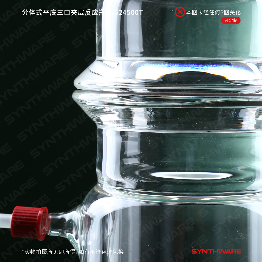 分体式平底三口夹层反应瓶,容量:3000ML,磨口:24/40,右侧口可匹配温度计套管 N523000T