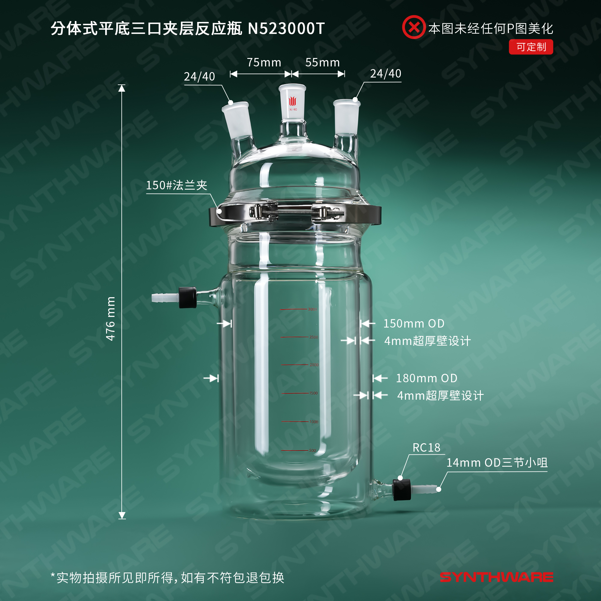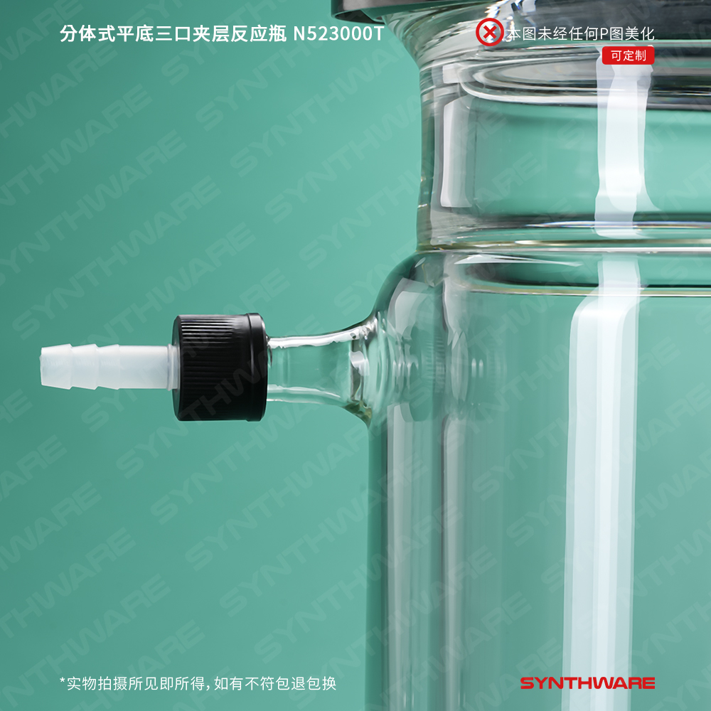 分体式平底三口夹层反应瓶,容量:3000ML,磨口:24/40,右侧口可匹配温度计套管 N523000T