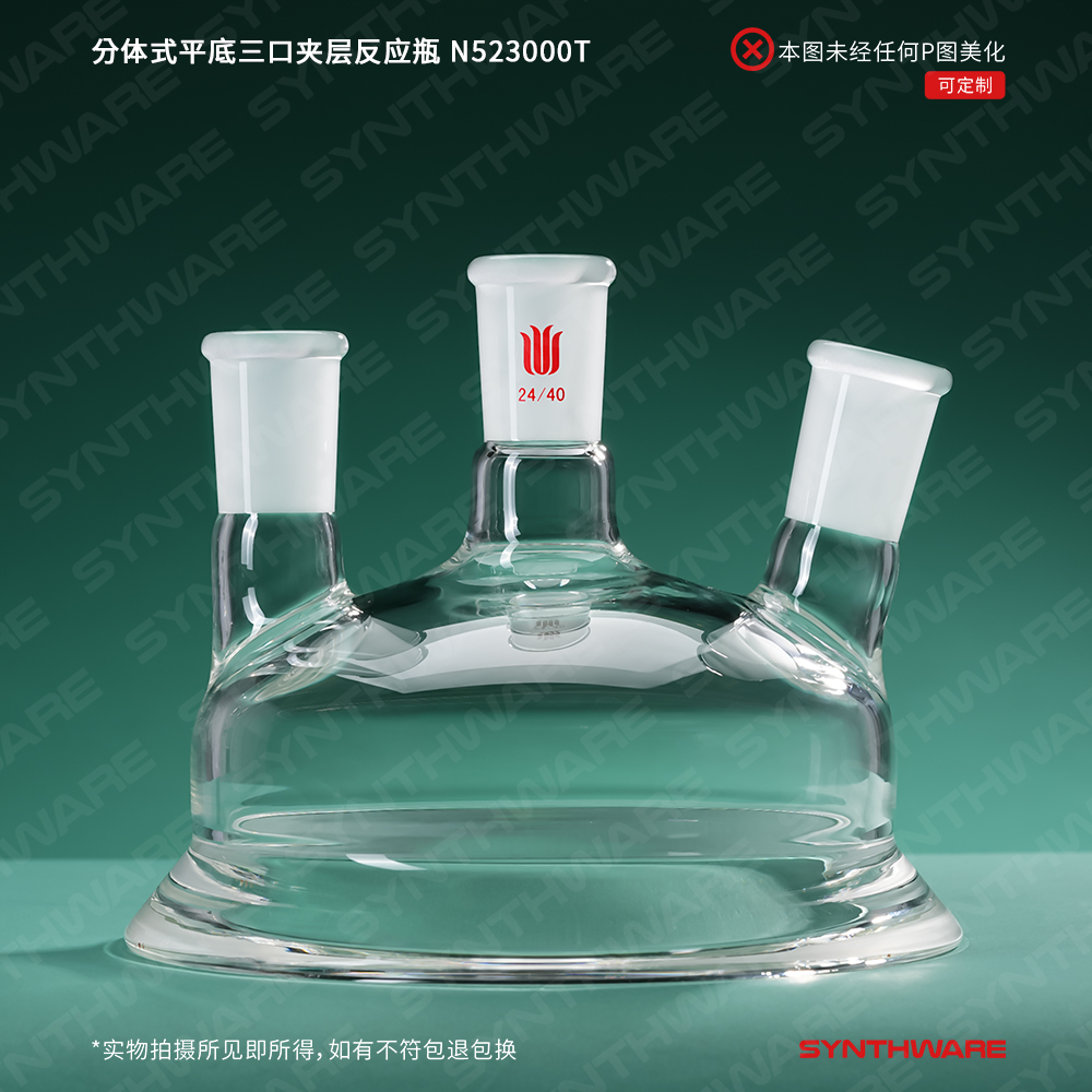 分体式平底三口夹层反应瓶,容量:1000ML,磨口:24/40,右侧口可匹配温度计套管 N524000T
