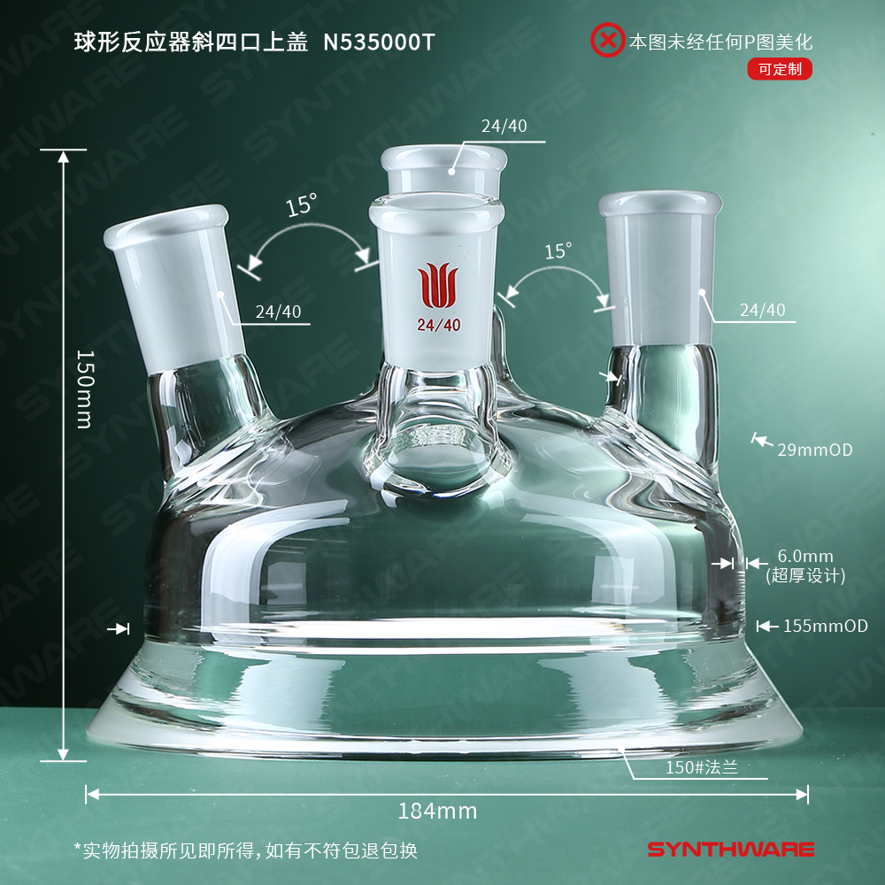 分体式平底四口夹层反应瓶,容量:3000ML,磨口:24/40,右侧口可匹配温度计套管 N533000T