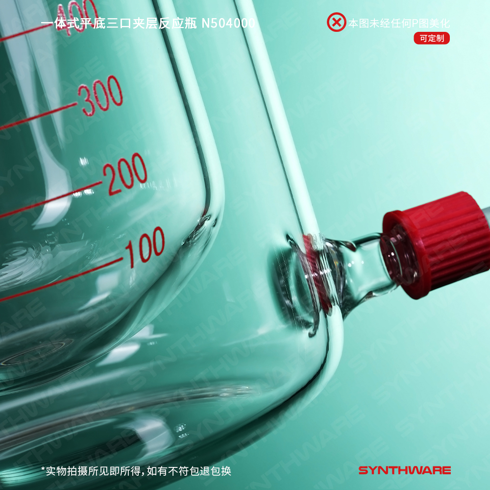 一体式平底三口夹层反应瓶,容量:500ML,磨口:24/40,右侧口可匹配温度计套管 N504500T