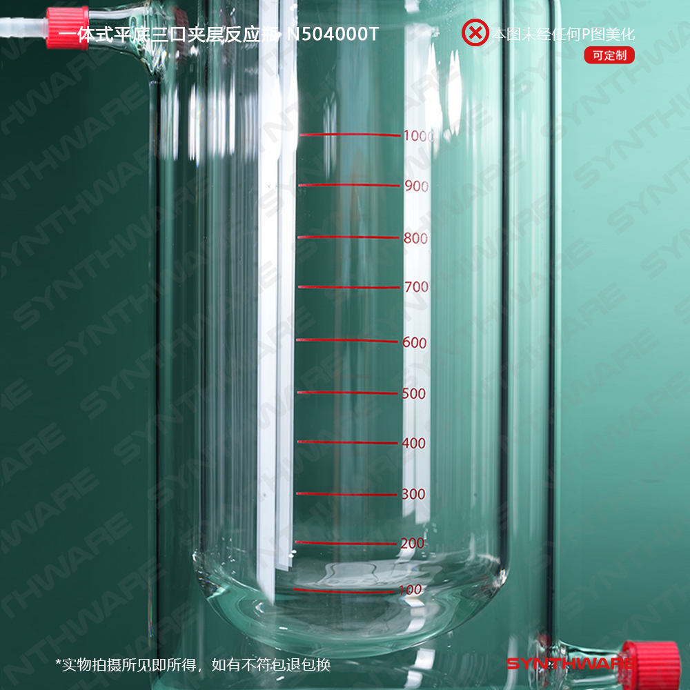 一体式平底三口夹层反应瓶,容量:1000ML,磨口:24/40,右侧口可匹配温度计套管 N504000T