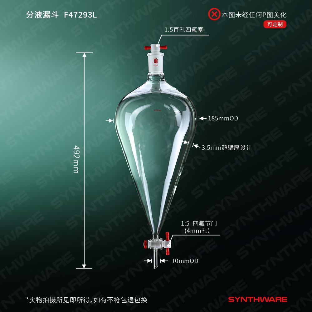 分液漏斗,上下磨口:24/40,4mm四氟节门,四氟口塞,2000mL F45242L