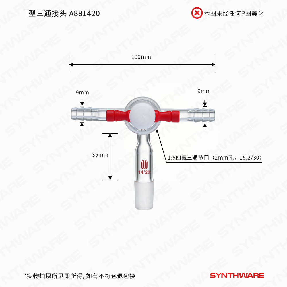 T型三通接头磨口,1:5四氟,14/20哨, A881420