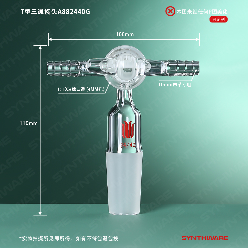 T型三通接头,磨口:24/40,4mmT型三通玻璃节门 A882440G