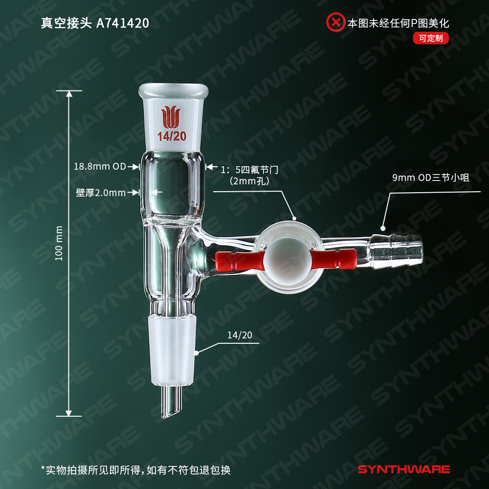 # 抽滤接头具2mm孔径四氟节门设计,标准1:5锥度精密研磨,旋塞磨口抛光处理,延长四氟旋塞使用寿命,确保良好的密封性和互换性。