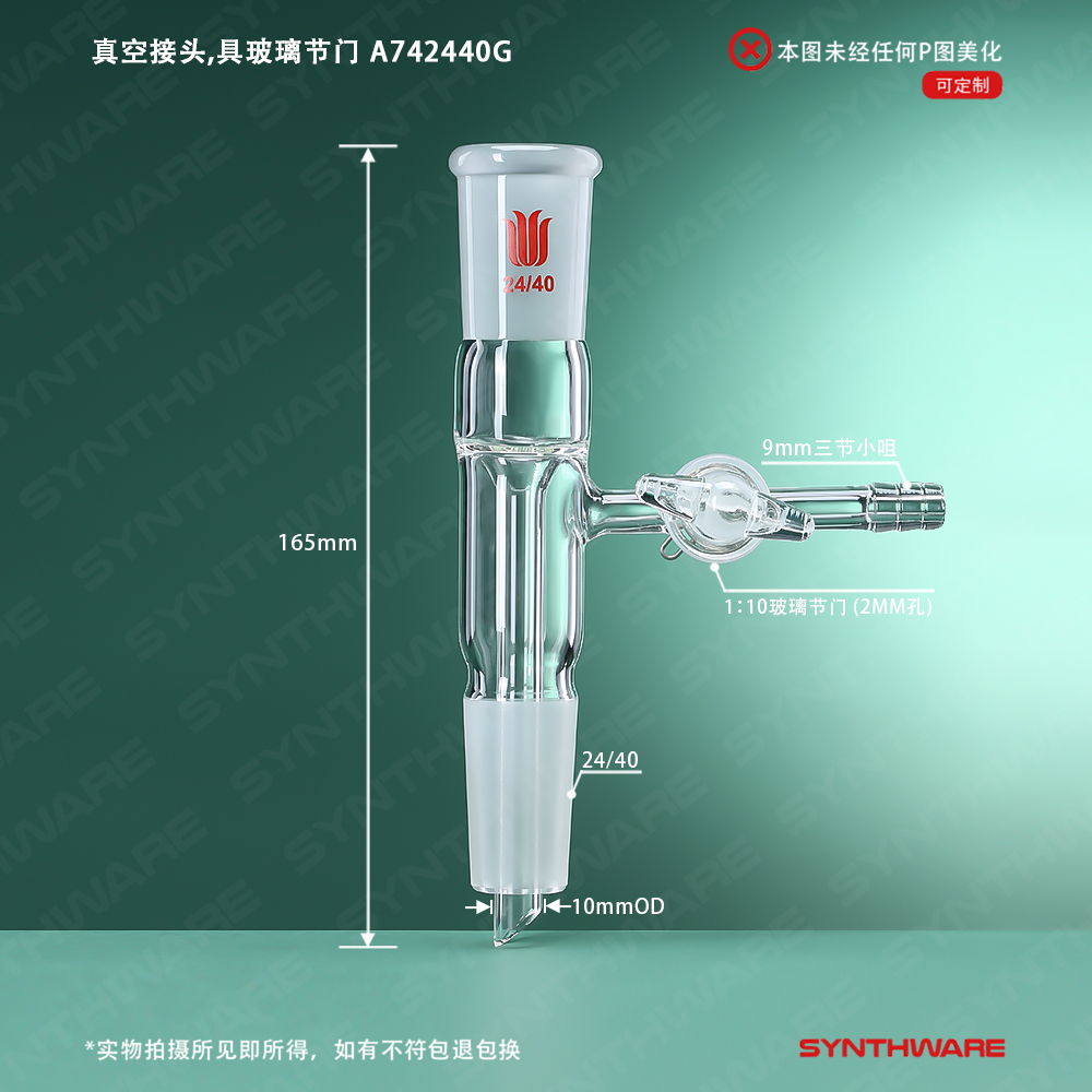 # 抽滤接头具2mm孔径玻璃节门,标准1:10锥度精密研磨,孔位正对齐,可100%互换。