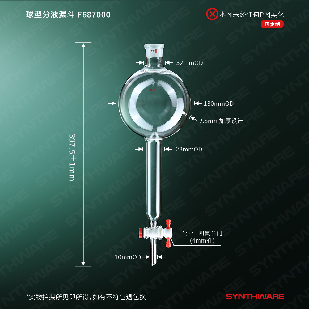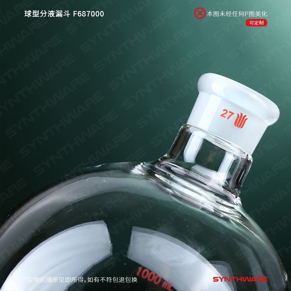 球型分液漏斗,1000mL,27#四氟塞子 F687000