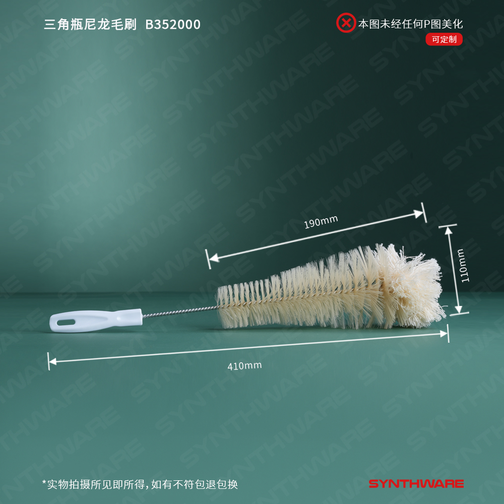 1000ML三角瓶尼龙毛刷,塑料手柄,顶部带棉线球 B351000