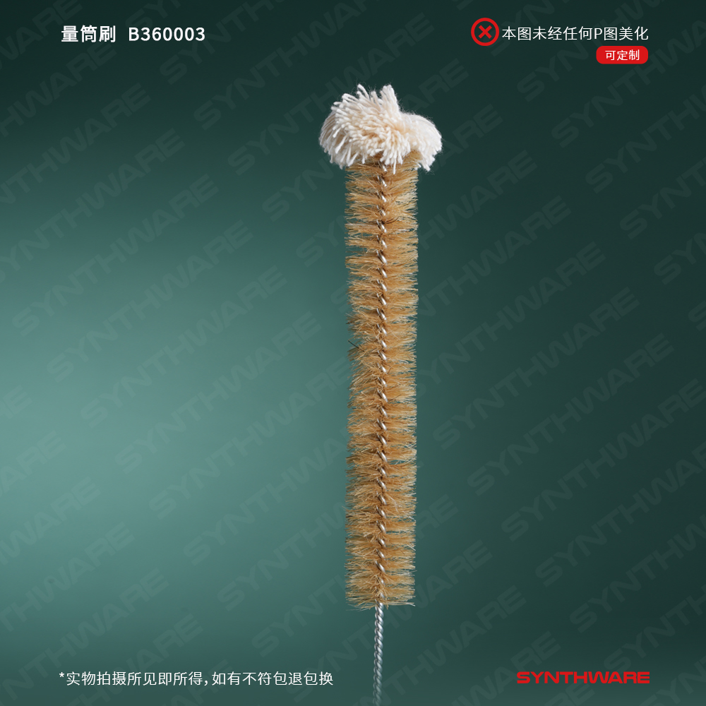 量筒刷,毛径30mm,毛长120mm,全长287mm,塑料手柄,顶部带棉线球 B360002