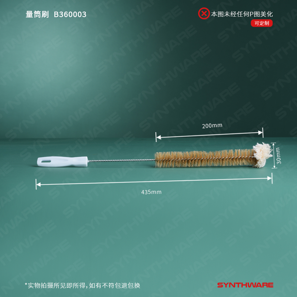 量筒刷,毛径30mm,毛长200mm,全长435mm,塑料手柄,顶部带棉线球 B360003