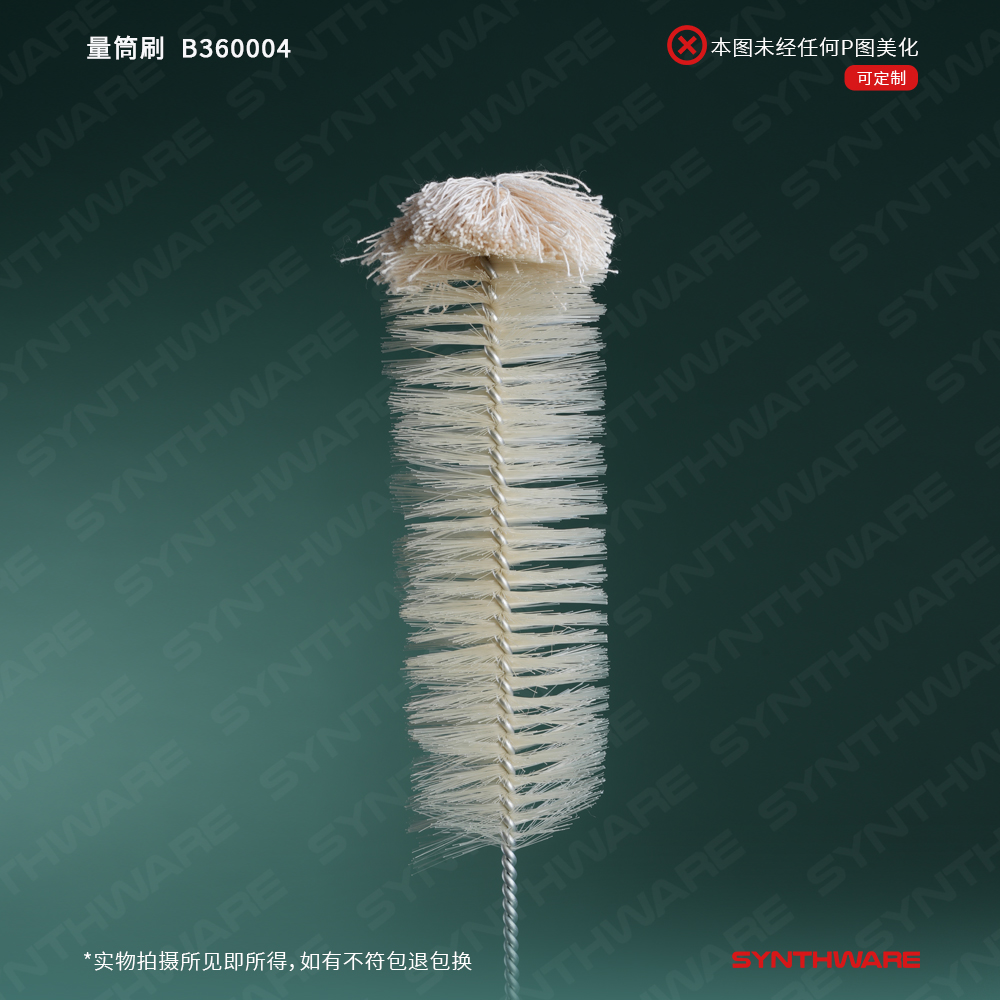量筒刷,毛径30mm,毛长120mm,全长287mm,塑料手柄,顶部带棉线球 B360002