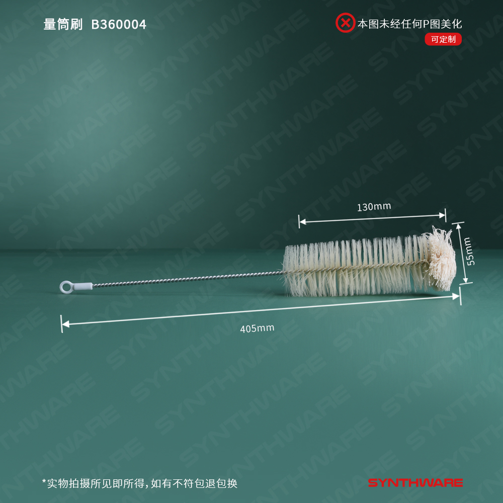 量筒刷,毛径55mm,毛长130mm,全长405mm,塑料手柄,顶部带棉线球 B360004