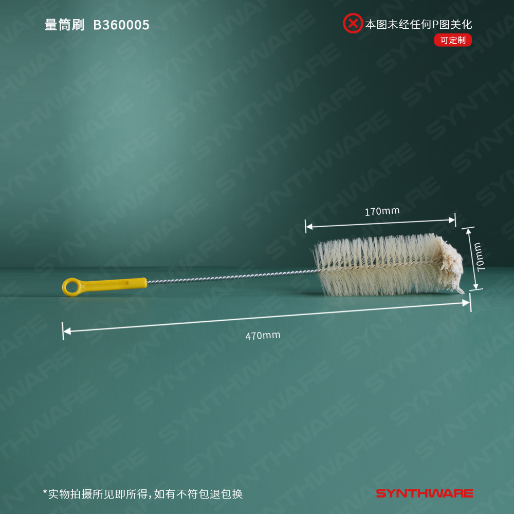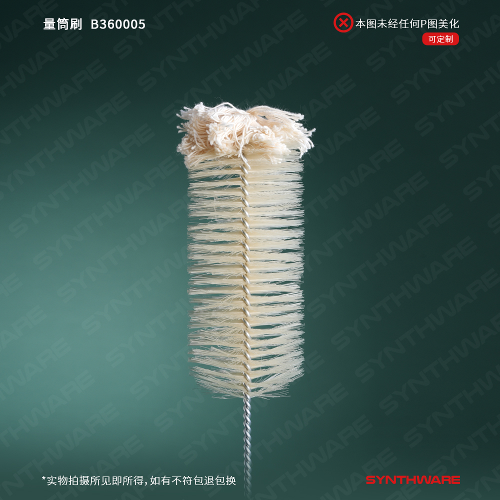 量筒刷,毛径30mm,毛长120mm,全长287mm,塑料手柄,顶部带棉线球 B360002