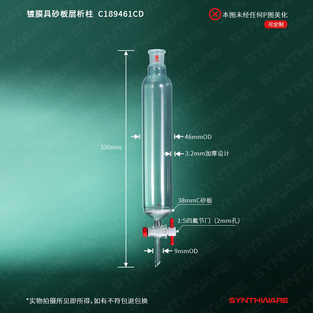 镀膜具砂板层析柱,φ46mm,有效长203mm,节门孔径:2mm,19/22 C189461CD