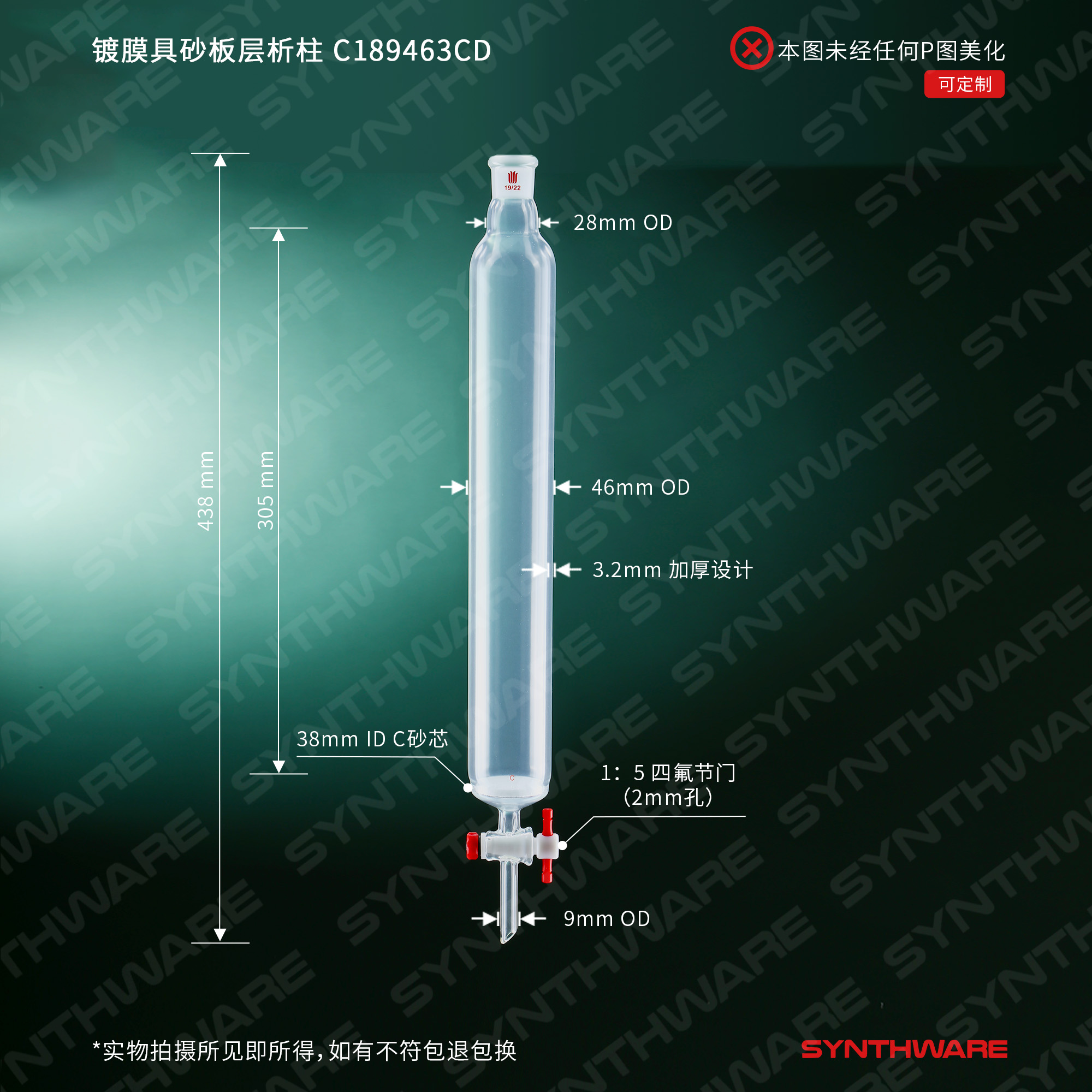 镀膜具砂板层析柱,φ46mm,有效长305mm,节门孔径:2mm,19/22 C189463CD