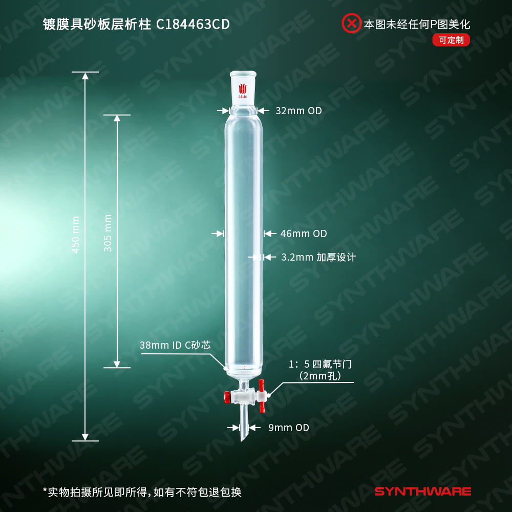 镀膜具砂板层析柱,φ46mm,有效长305mm,节门孔径:2mm,24/40 C184463CD