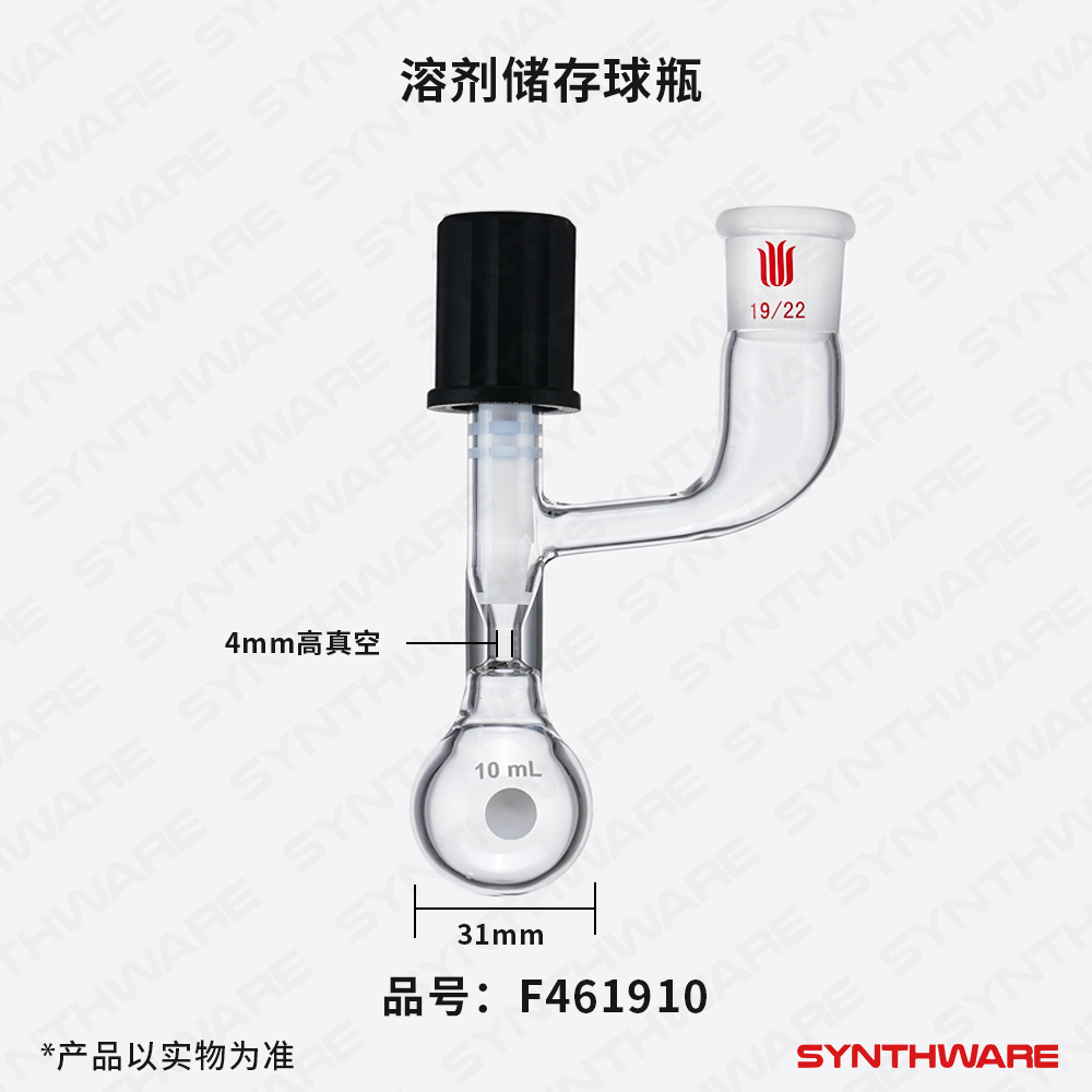 溶剂储存球瓶,内磨口:19/22,容量:10ml,4mm高真空阀 F461910
