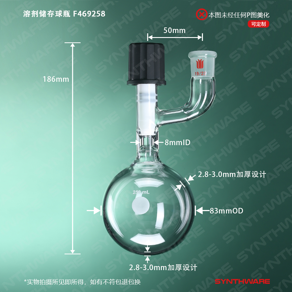 溶剂储存球瓶,内磨口:19/22,容量:250ml,8mm高真空阀 F469258
