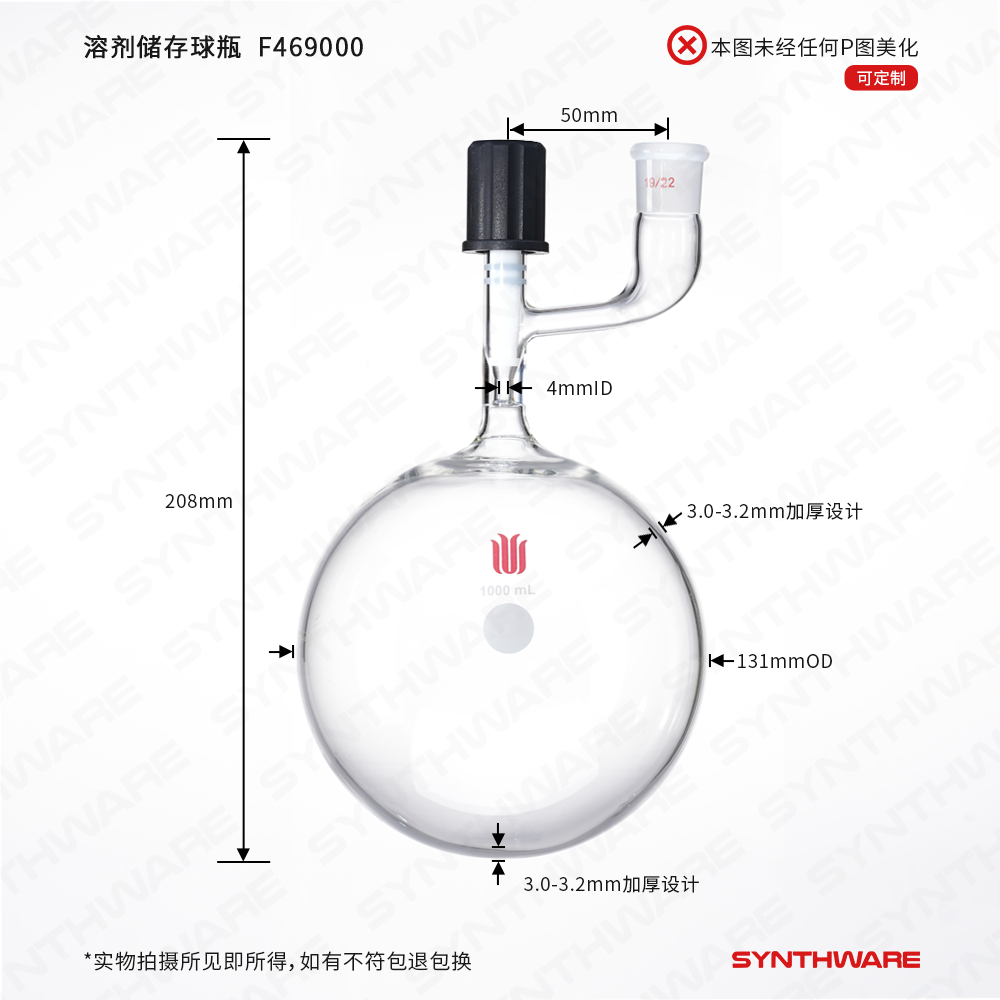 溶剂储存球瓶,内磨口:19/22,容量:1000ml,4mm高真空阀 F469000
