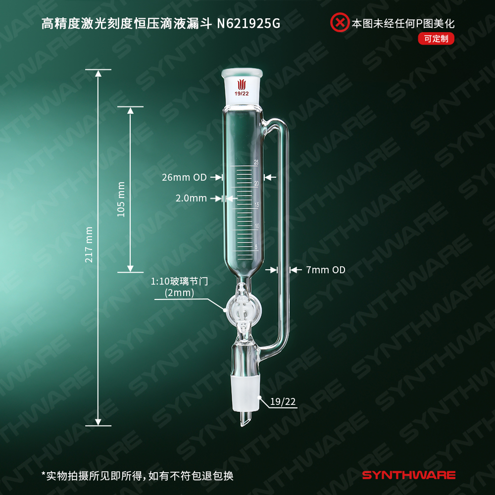 高精度激光刻度恒压滴液漏斗,玻璃节门,25ml,19/22 N621925G