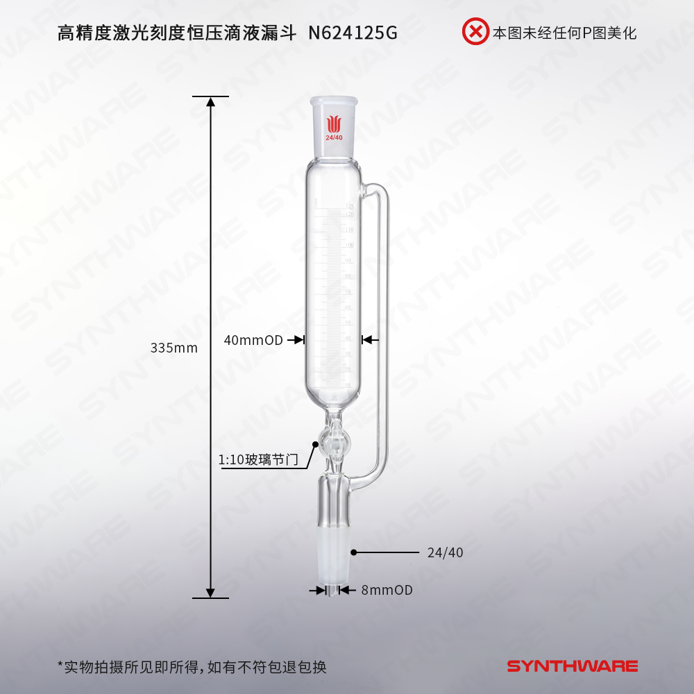 高精度激光刻度恒压滴液漏斗,玻璃节门,125ml,24/40 N624125G