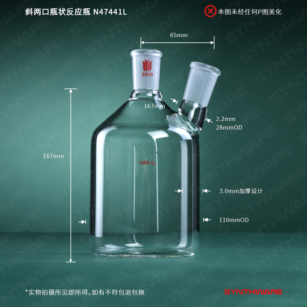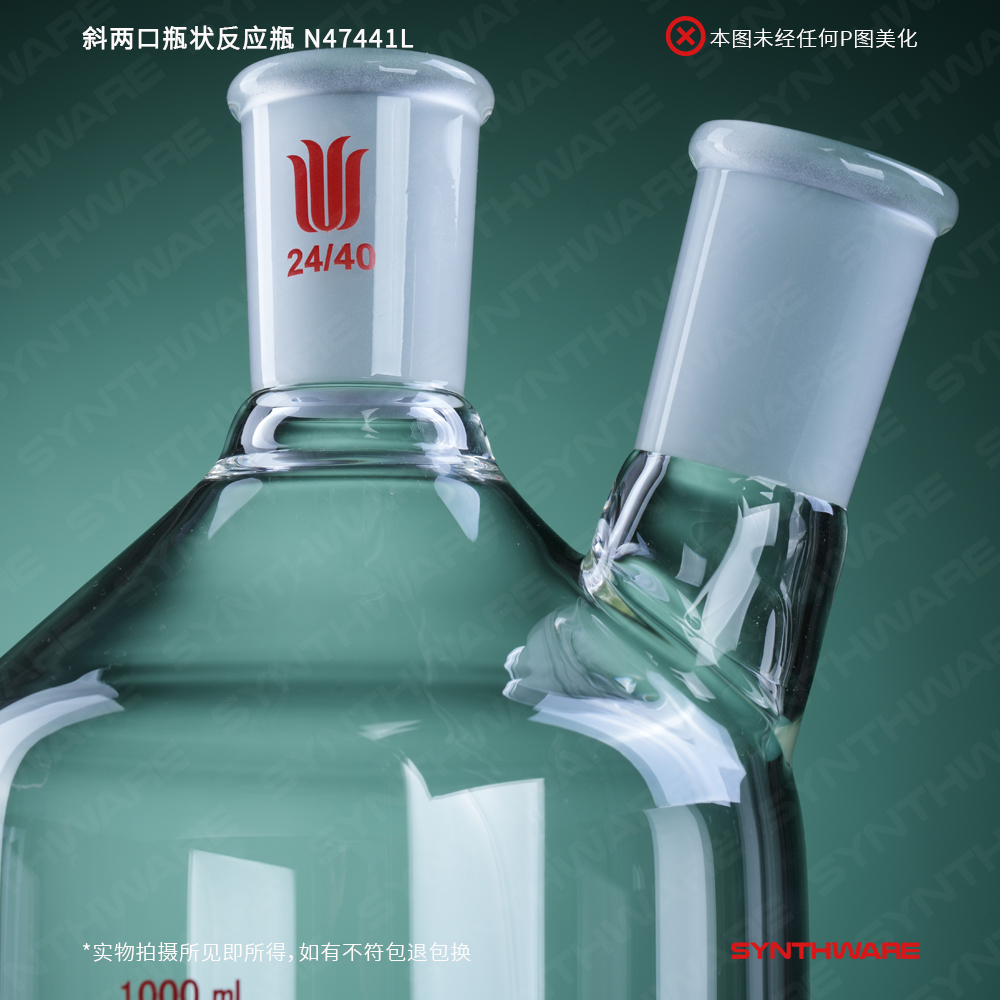 斜两口瓶状反应瓶,容量:1000ML,主口24/40,侧口24/40 N47441L