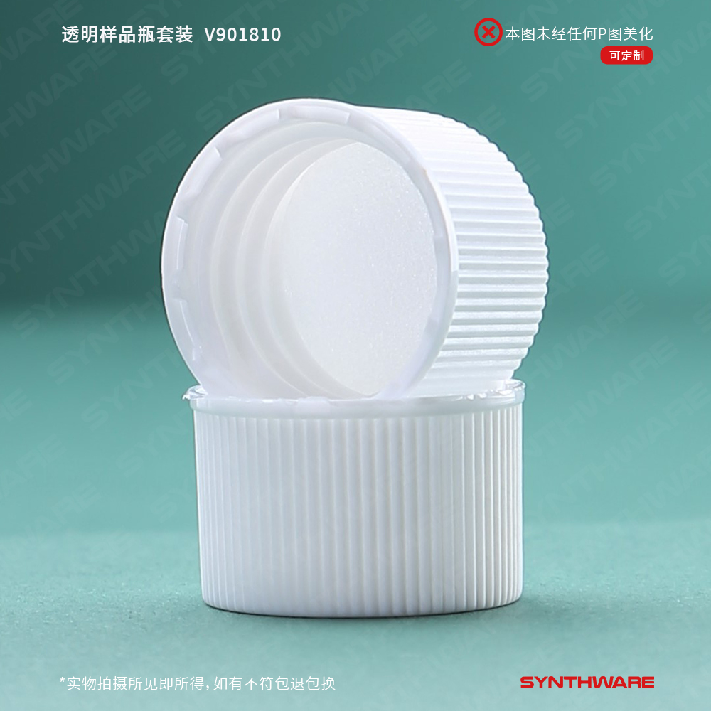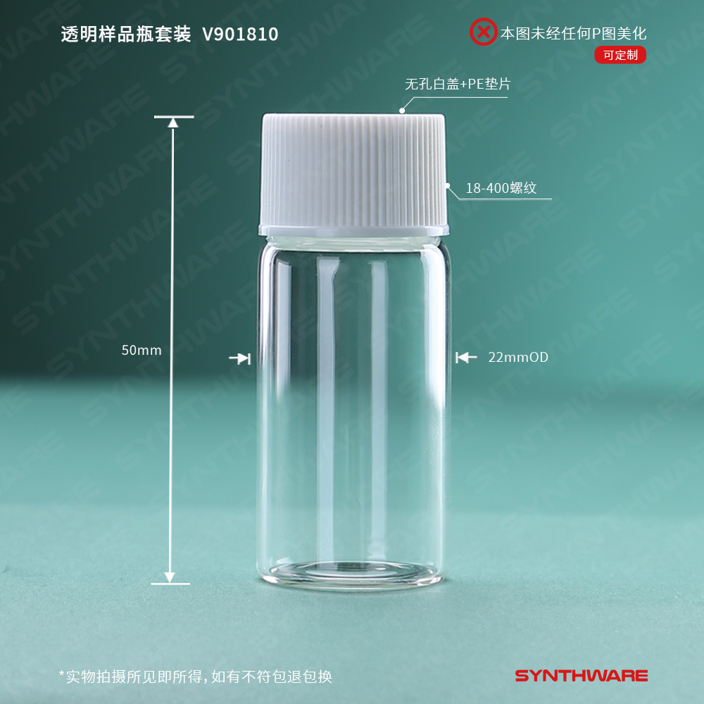 18-400螺纹口透明样品瓶套装 10ml,22*50mm,样品瓶+无孔白盖+PE垫片 100套/套 V901810