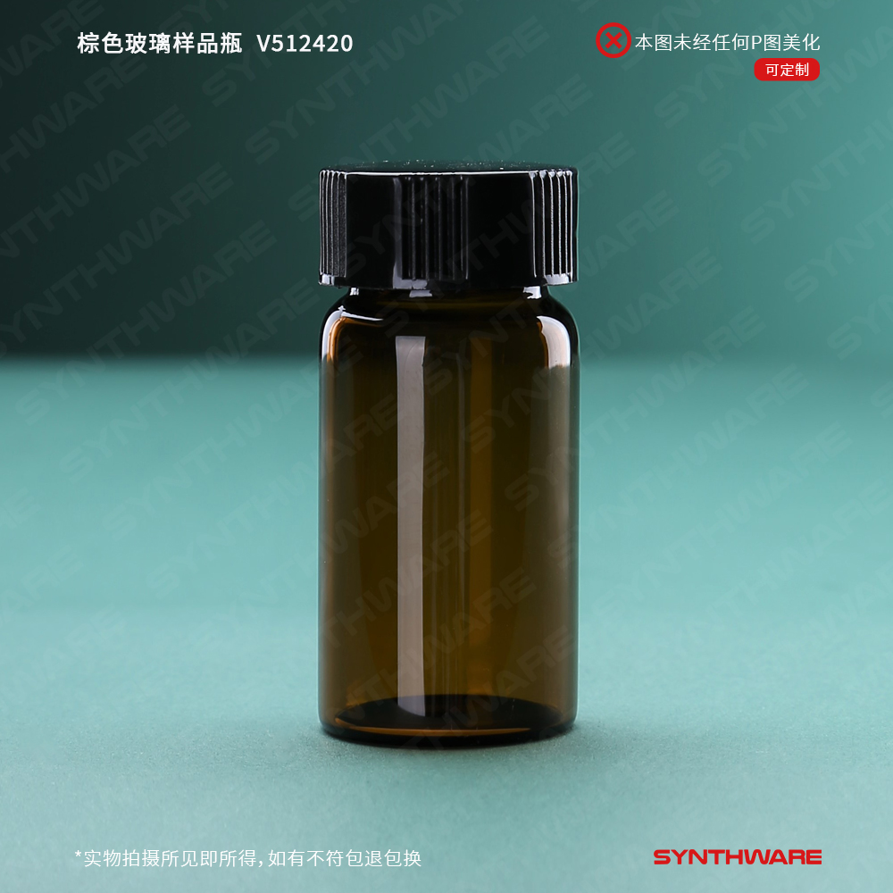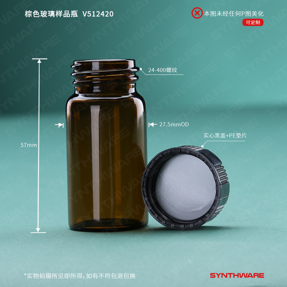 24-400螺纹口棕色玻璃样品瓶,20ml,27.5*57mm,样品瓶+实心黑盖+PE垫片,100套/套 V512420