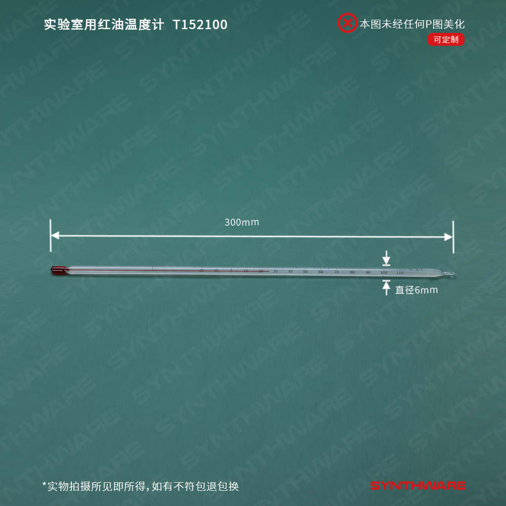 实验室用红油温度计,温度范围-20°-110°,直径6mm,可匹配具孔温度计盖使用 T152100