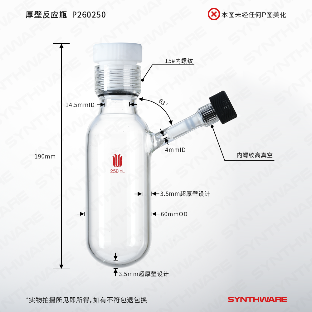 25#内螺纹250ml厚壁反应瓶,侧管11#内螺纹0-8mm高真空节门 P262250