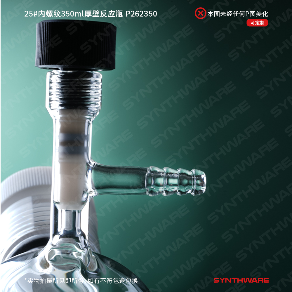 25#内螺纹350ml厚壁反应瓶,侧管11#内螺纹0-8mm高真空节门 P262350
