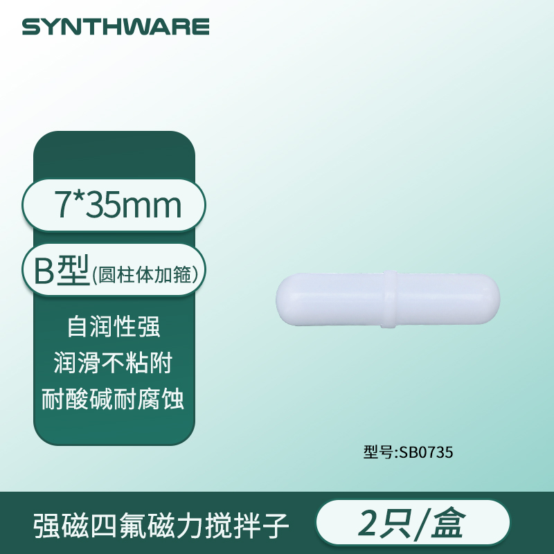 四氟磁力搅拌子 B7*40mm(圆柱体加箍)2只/盒 SB0740