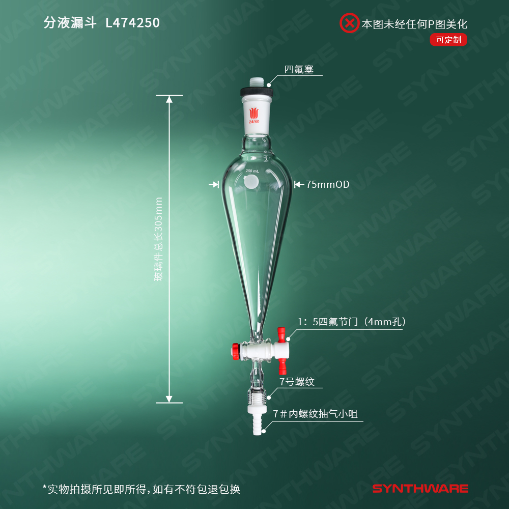 分液漏斗,四氟口塞,下端带可拆卸连接杆,磨口:24/40,容量250ml L474250