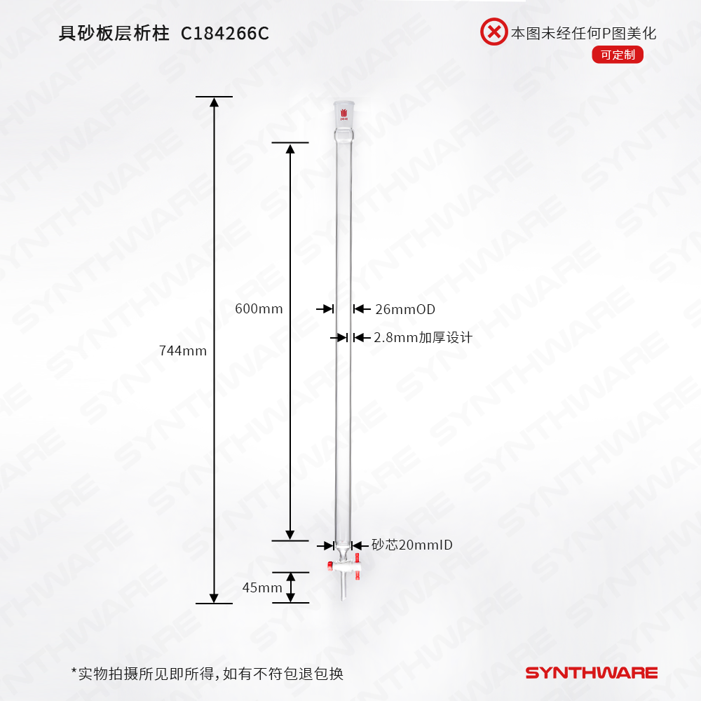 具砂板层析柱,φ26mm,有效长600mm,节门孔径:2mm,24/40 C184266C