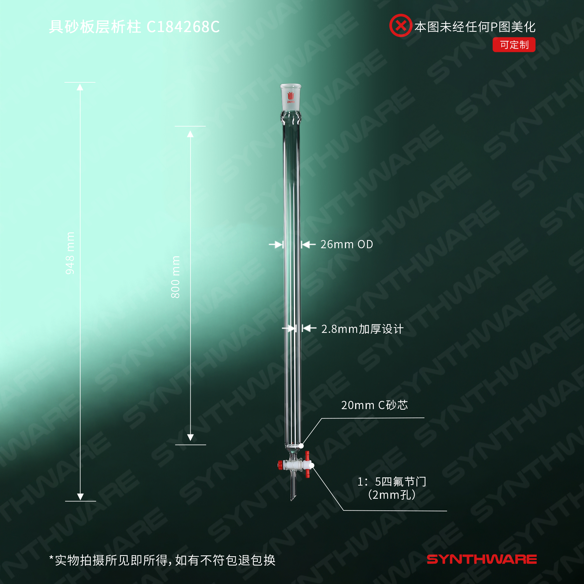 具砂板层析柱,φ26mm,有效长800mm,节门孔径:2mm,24/40 C184268C